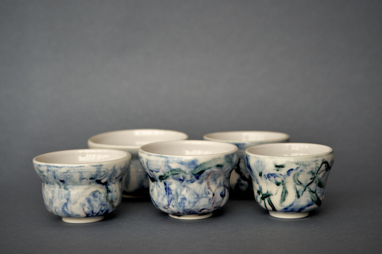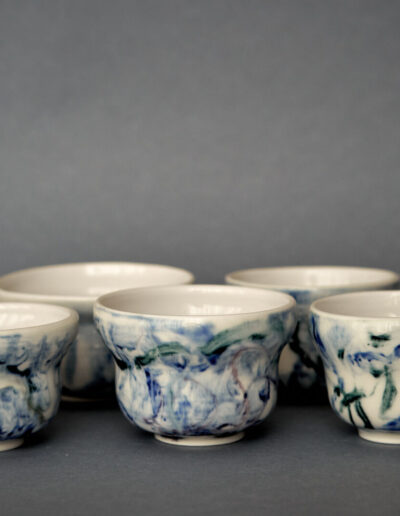 Komplet czarek do herbaty, malarstwo podszkliwne
